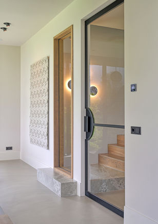 Deze woning in de polder omarmt het landschap. De kopgevel van de woning is transparant uitgevoerd, waardoor je de vergezichten optimaal beleefd. Door de zitkuil hou je wel de beschutting en geborgenheid. De woning kenmerkt zich door een lange as waar de ruimte aan zijn gekoppeld. De woning definieert zich door de rietenkap en de gemetselde gevel en het bijgebouw door het felsendak en de houtengevelbekleding. Dit komt samen in de glazen corridor, waarde materialen samenkomen.